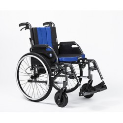 Lekki i wygodny wózek aluminiowy Napędzany siłą mięśni rąk użytkownika lub poprzezprowadzenie przez osobę towarzyszącą.Może być wykorzystywany zarówno wewnątrz,jak i na zewnątrz pomieszczeń